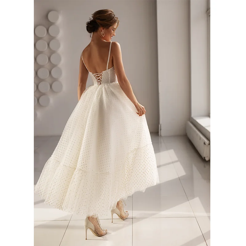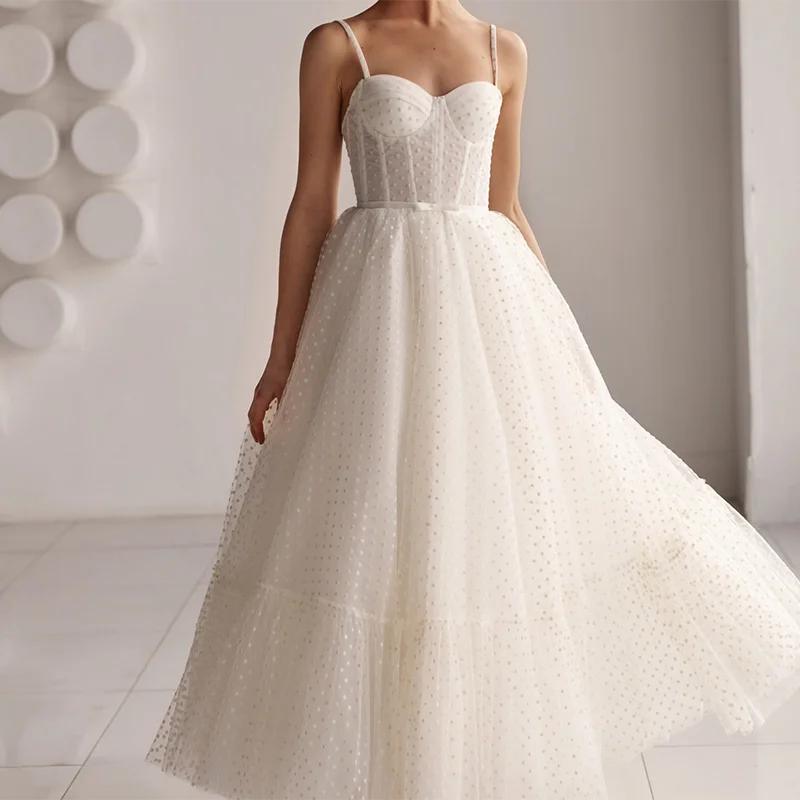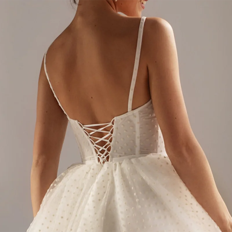 Be the first to review “Elegant white suspender wedding dress tulle wavy A-shaped skirt bride’s romantic dress with halter strap vestidos de novia”