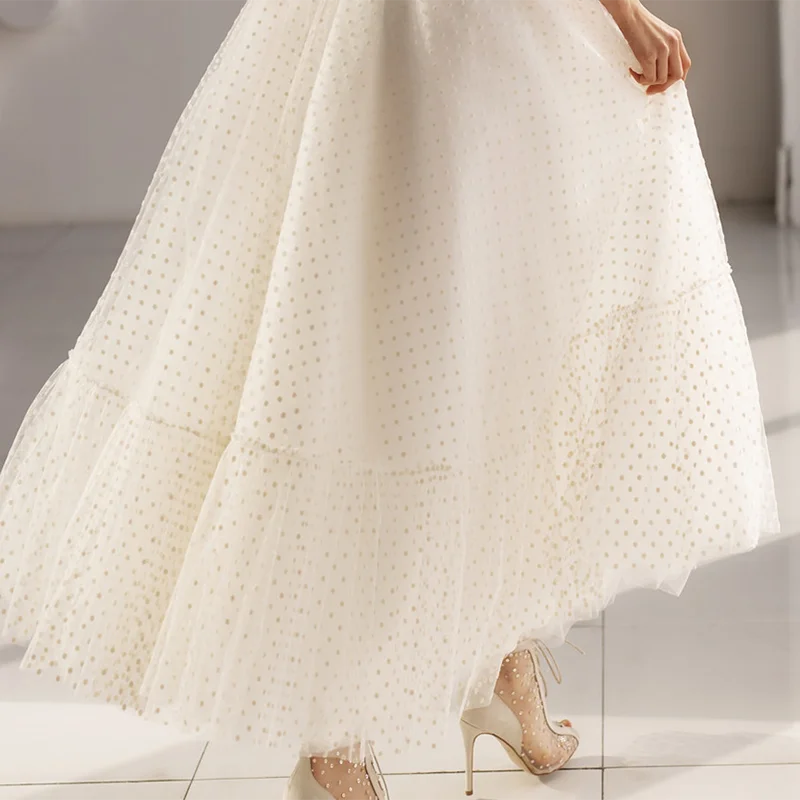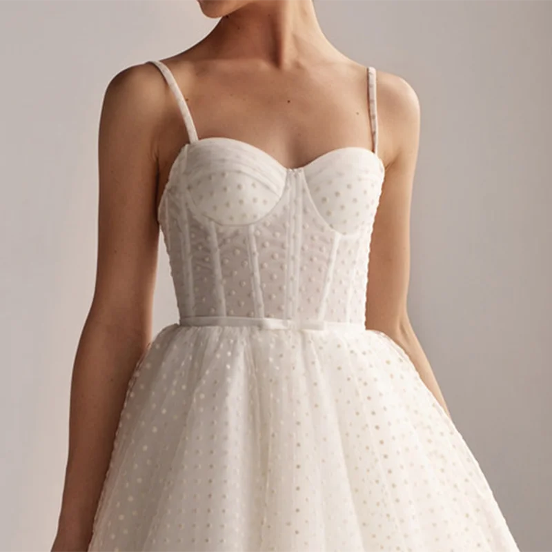 Elegant white suspender wedding dress tulle wavy A-shaped skirt bride’s romantic dress with halter strap vestidos de novia