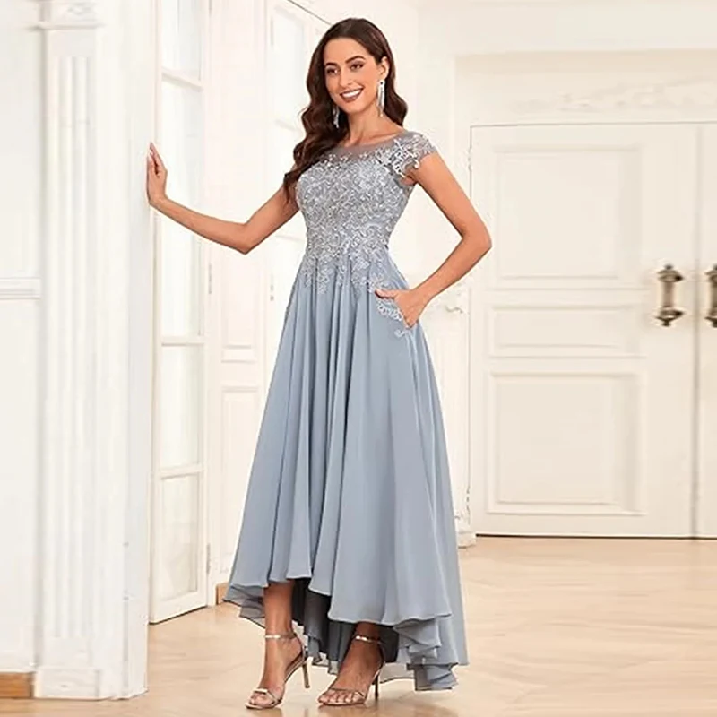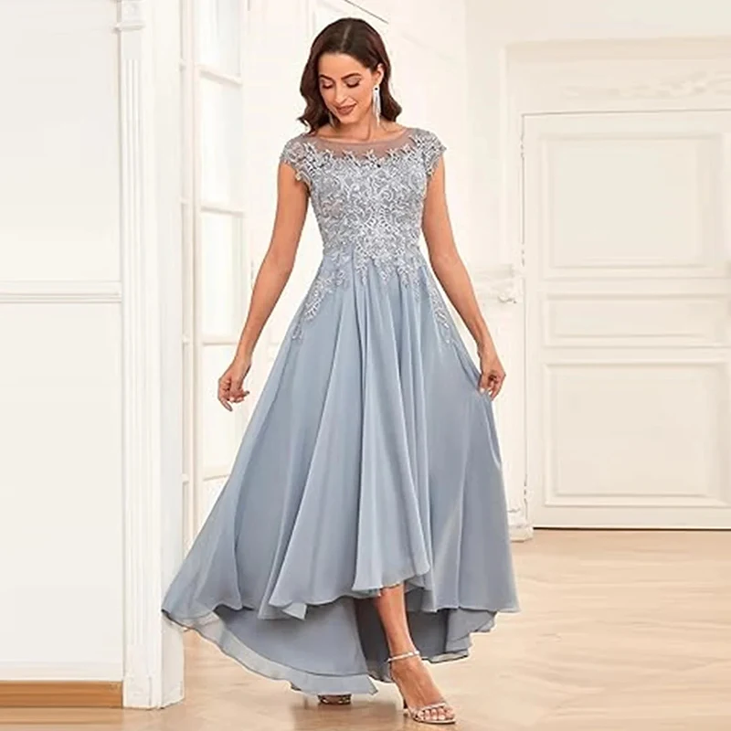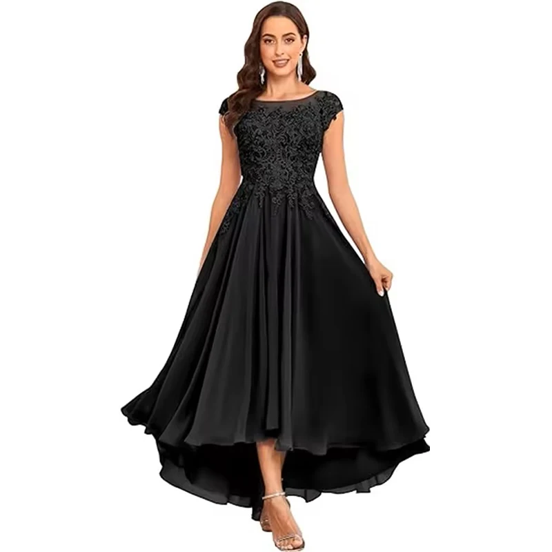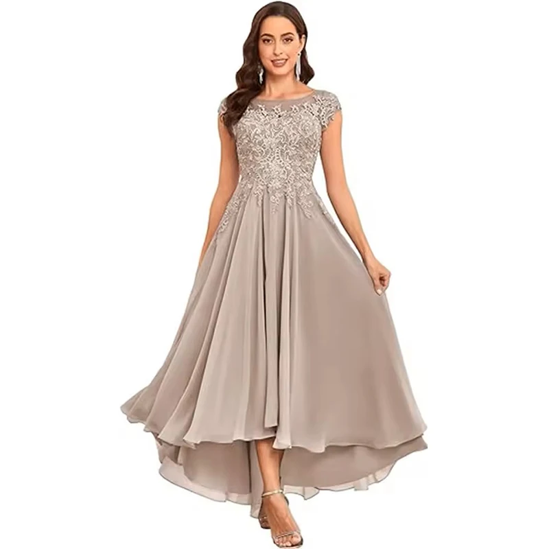 Lace Appliqués Mother Of The Bride Dresses for Wedding Party Dress Evening Dress High-low Chiffon Wedding Guest Dress Tea Length